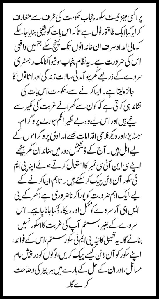 Instant Results – No waiting for days or weeks. Get your PMT score and eligibility status in seconds after entering your CNIC.